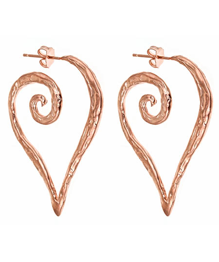 The Amery Carriere rose goldtone heart-scroll hoop earrings have an abstract design that's crafted of textured 14k rose gold vermeil. The scroll detail curves under your ear lobe for a gorgeous finishing touch. The post backs are for pierced ears.