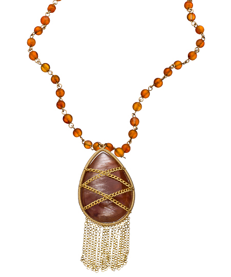 Home > Fashion Jewelry > Andara Quartz Carnelian Oval Banded Fringe Necklace