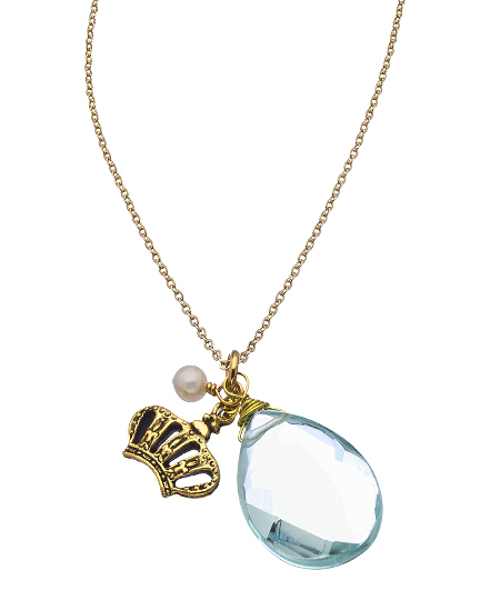Honor your great sense of style with this royal crown necklace from Baubella by Sophia & Chloe. The necklace features a collection of charms including a gorgeous Renaissance- inspired gold crown, a large pale mint crystal, and an adorable white pearl. It's fit for a princess.