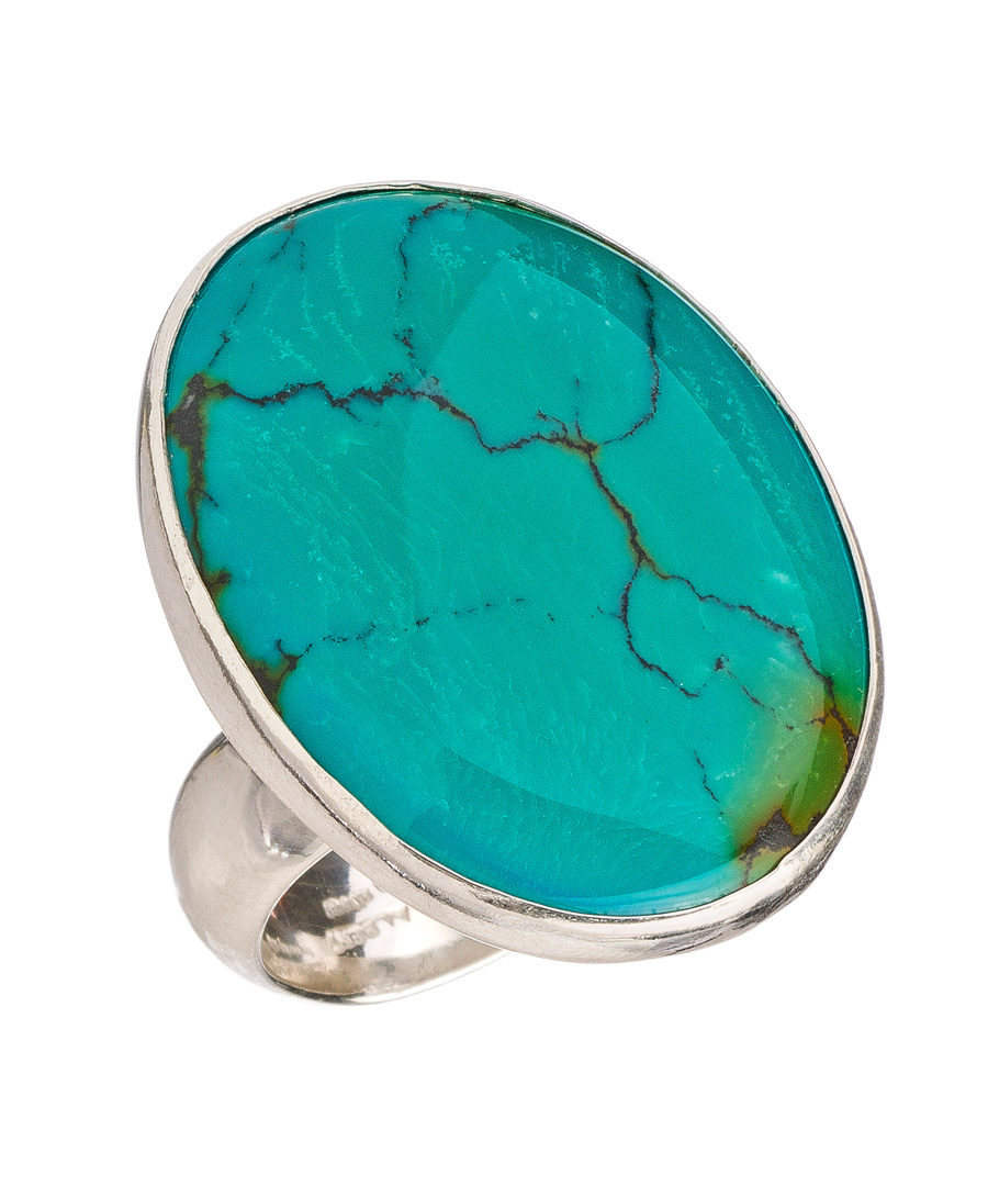 It's easy to look like a fashion maven in this oval turquoise adjustable ring from Charles Albert. The turquoise stone shows off its unique characteristics wonderfully in a bezel setting. Its a bold look that's simple at heart, not to mention a great compliment to your everyday looks.