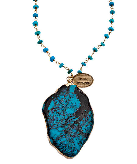 Timeless and always on trend, this turquoise and aqua bead Daisy pendant from Dara Ettinger necklace is a must have. Wear it with many looks, the long beaded chain slips easily over your head, and the large turquoise pendant is rimmed in gold for added luxury. This necklace will quickly become one of your favorite pieces of jewelry.