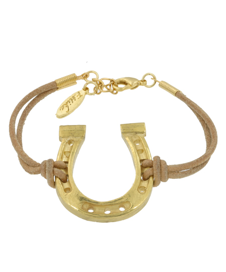 Ettika Good Luck Bracelet is amazing alone or layered with other Ettika bracelets. Tan leather bracelet is shown. Bracelet is adjustable for perfect fit.
