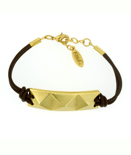 Ettika Leather Pyramid Row Bracelet is amazing alone or layered with other Ettika bracelets. Your choice of color leather with gold charm. Bracelet is adjustable for perfect fit.