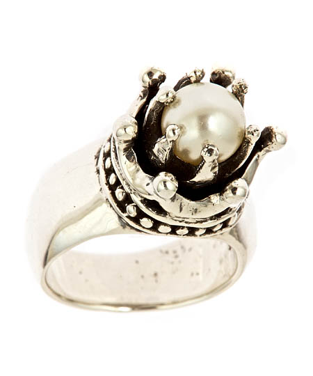 Home > Silver Jewelry >Femme Metale Goddess Ring with Faux Pearl