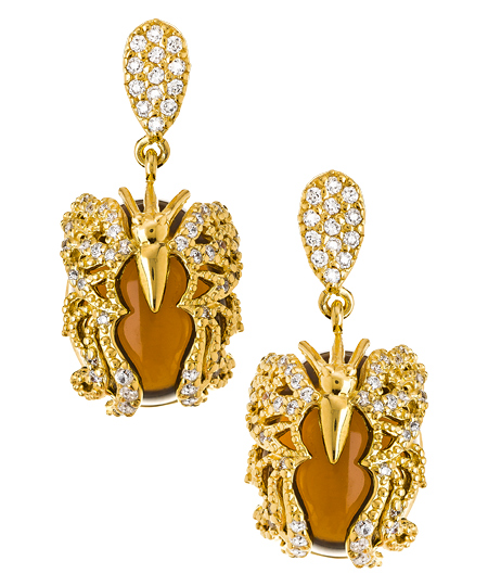 Dress things up with the brown amulet butterfly earrings from Gala. All of the details from the pave teardrop shaped post to the cubic zirconia paved butterfly design, give the earrings an extravagant feel. These earrings fasten with post back closures for pierced ears.