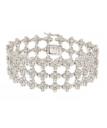 Dazzle at the next evening social event in the Genevive by CZC wide trinity bracelet. Three columns of slender cubic zirconium crosses, backed in gleaming sterling silver, are a solid statement piece and the perfect finishing touch to formalwear. The trinity bracelet is sure to incite the sixth deadly sin: envy.