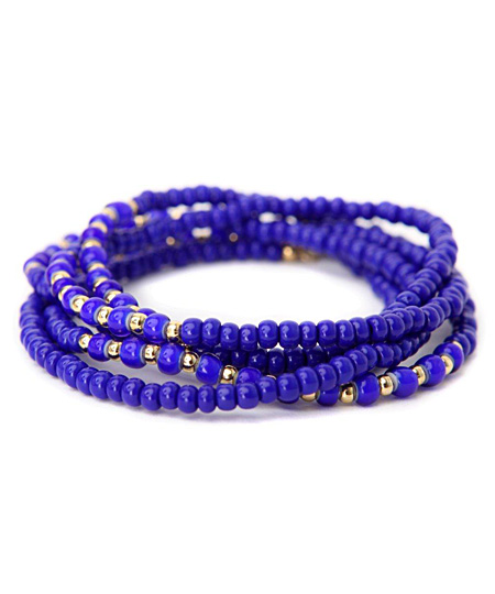 Make your outfit pop with these royal blue beaded convertible bracelets by Gigi Chic. The gold-plate nuggets shimmer against the bold blue beads. These versatile strands can be mixed and matched with your other Gigi Chic pieces or worn long as necklaces.