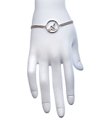 This flashy socialite initial bracelet from Grey Lee is customized jewelry that illuminates your wardrobe. It features your chosen initial studded with brilliant diamonds in a swirly capital font. The initial is surrounded by a gold halo and the bracelet has mesh chains for a stylish effect.