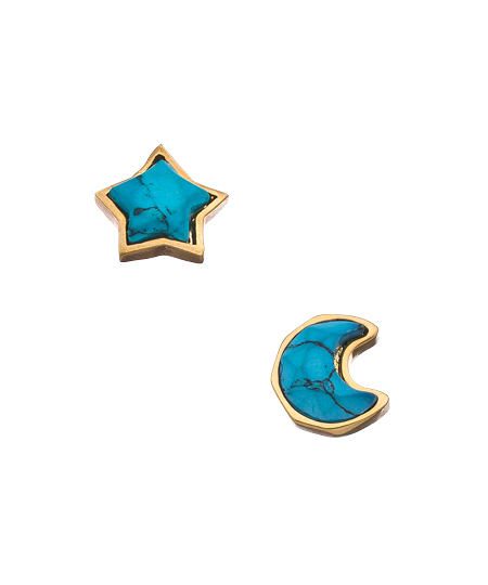 You've been searching all over for turquoise moons and stars, and now you've found them! These adorable turquoise moon & star stud earrings from Crystal Streets are genuine turquoise with a natural texture and matte finish. They bring night-time glamor to your everyday looks. Also available in amethyst and coral crystal.