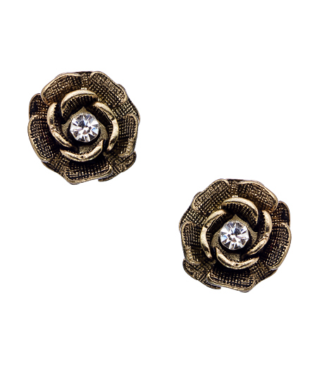 These Lolita Jewelry gold and crystal flower stud earrings are artisan crafted with elegance. Textured and polished gold for the beautiful flower, whose center is a sparkling, faceted crystal. These are the ideal day-into-evening accessory and will beautifully accessorize your favorite wardrobe options. Earrings have a post closure for pierced ears.