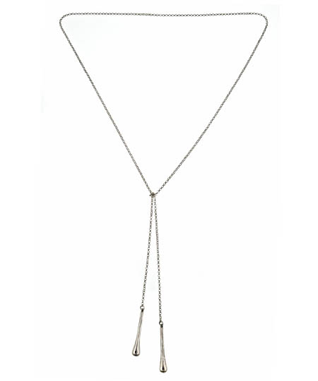 Loop the ends of the sterling silver lariat necklace by Marie Todd around your neck for a graceful look. The ends of the long and elegant lariat necklace are finished with polished sterling silver drops. This contemporary design will transition beautifully from day to night.