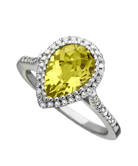 Home > Silver Jewelry >Mystic Light Diamond Lemon Quartz Empress Teardrop Cocktail Ring