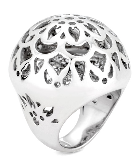 Real Jewel's real light grande ring perfectly balances bold and delicate design elements. The large, domed crown of sterling silver sports metalwork almost elven in its airy, lightweight luminosity. The gorgeous cutouts continue down the sides of the band, a special detail that sets this ring above the rest. Made from eco-friendly, 100% recycled sterling silver.