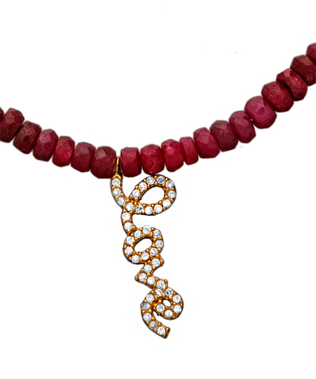 Spell out your love with this red beaded love pendant necklace. This crush-worthy piece showcases the script love pendant in yellow-gold vermeil with white cubic zirconia detailing. The chain necklace fastens with a spring-ring clasp.