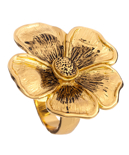The aster cocktail ring by Ruby Kats is beauty in full bloom. The large antique gold plated rose sits on your hand to show off its blossoming petals. Wear this on a casual day for and accessory that will be sure to pop.