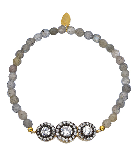 bound to stand out from the crowd wearing this piece crafted with semi-precious labradorite beads and cubic zirconias. Never again, go