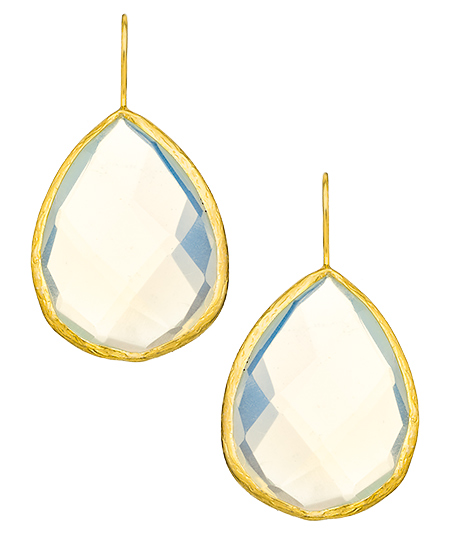 The moonstone teardrop statement earrings from Seraphina are spectacular. Oversized faceted moonstones reflect an array of gorgeous colors and their clean design makes them irresistible. With a design so sleek and simple, these glamorous drops will never go out of style.