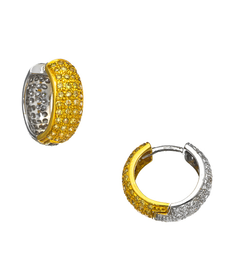 Sethi Couture doubles your sparkle with these yellow and white gold, yellow and white diamond huggies earrings. Gently hugging the earlobe - they're also reversible, giving you twice the options.