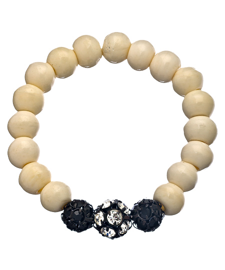 The Isela bone Swarovski crystal stretch bracelet from Tina Tang is calling your name. The stretch bracelet is strung with white bone beads. One section of the bracelet shines with round cut, prong set clear and black Swarovski crystals.