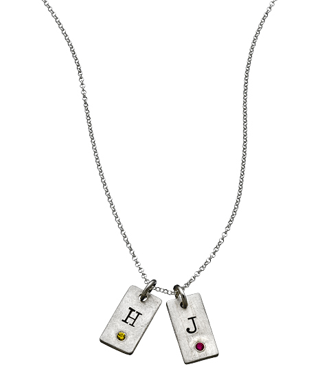 Add a bit of sparkle to the initial's you're representing with this mod mommy double birthstone initial tag necklace from Urban Sweetpea. Each tag can be engraved with a maximum of 1 character. This necklace fastens with a spring ring closure.