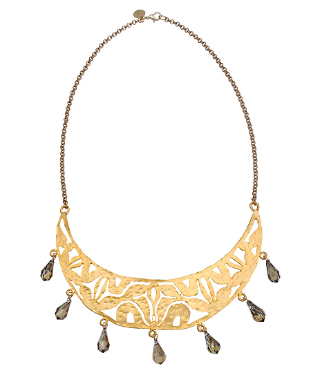 This creative and beautiful pyrite decorative arc bib necklace from Wendy Mink is easy to wear and even easier to love. The gold vermeil cutout bib is accented with shimmering pyrite drops and drapes gracefully around your neckline with a split chain. Elevate your look with this chic Wendy Mink original.