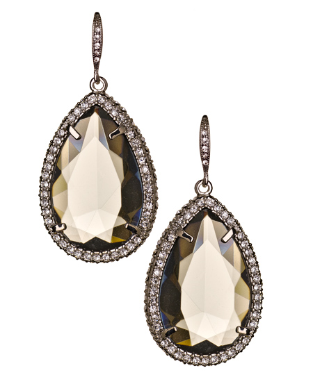 How can anyone resist the beauty of these black diamond crystal teardrop holiday gem earrings from ABS? The way the black diamond crystal and clear crystals work together is out of this world. These earrings fasten with a French wire hook for pierced ears.