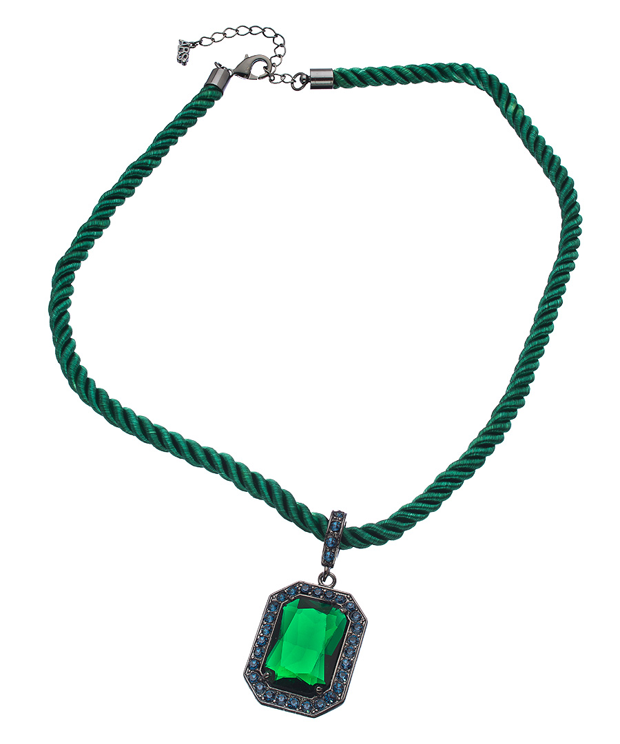 This sultry emerald rope necklace from ABS has a cool dynamic design that is sure to stand out. The glass and crystal-studded pendant hangs from a twisted faux silk cord with an artistic flourish. Wear this creative necklace when you want to be striking!
