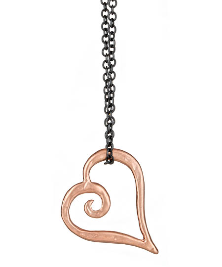 The Amery Carriere rose goldtone scroll-heart pendant necklace offers an eclectic mix of matte 14k rose gold vermeil and oxidized sterling silver. The short ball chain loops through the shapely rose goldtone pendant for a modern touch. This gorgeous necklace is finished with a rose goldtone heart detailed lobster-claw clasp.