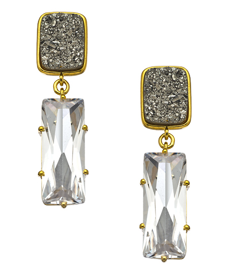 Dazzle your friends with this pair of exquisite cubic zirconia baguette druzy earrings from Andara. The eye-catching shimmering baguette-cut white cubic zirconia stone dangles from gleaming silver druzy. This picture-perfect pair of earrings are ideal for spontaneous get-togethers and happy hours.