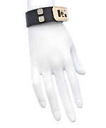 Textured black leather, gold and crystals comprise this exquisite Andara gold, black leather and crystal twist buckle bracelet. Adjustable to three sizes the unique twist buckle is as extraordinary as the rest of this lovely and versatile bracelet.