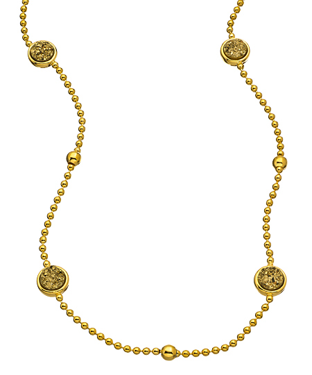Add a golden sparkle to your ensemble with the lovely gold druzy bead necklace from Andara. Four druzy drops highlight a refined gold ball link chain. The necklace complements your subtle beauty.