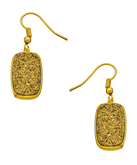 Top off your favorite formal attire with a pair of dazzling gold druzy rectangle drop earrings from Andara. Whether you're accessorizing for an afternoon wedding or evening out on the town, this glittering golden pair always make your outfit extra special!