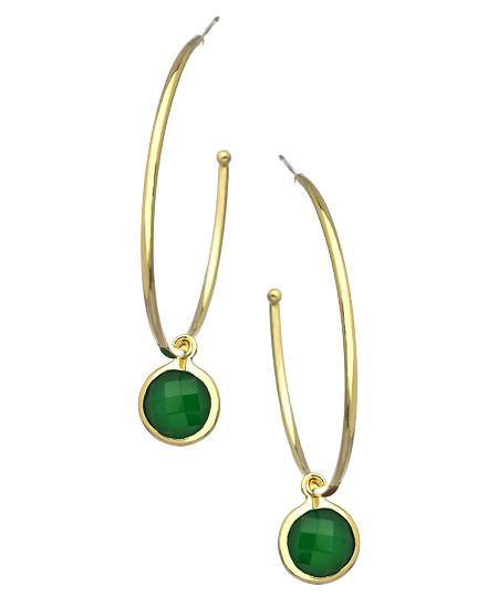 Get true elegance with these classy open hoop gemstone earrings from Andara. Crafted in 14-karat gold plated settings, you can choose between carnelian, quartz, or green onyx gemstones. They sparkle, glisten, and add pizazz to everything you pair them with.