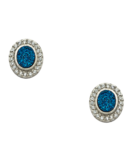 The rich colors of the oval blue druzy stud earrings from Andara bring your ensemble to life! Twinkling round cut druzy is enhanced by a halo cubic zirconia stones on dainty, wear-anywhere earrings. Wear them for a look that will be sure to draw admiration!