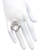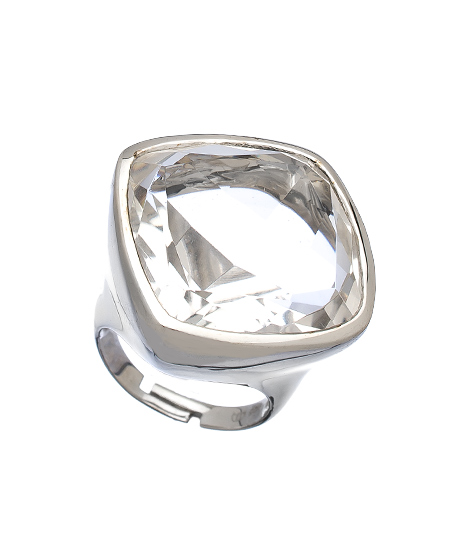 For a statement ring that leaves no doubt, consider this Andara silver and rock crystal square ring... its sparkle is legendary, its sophistication is timeless. An oversized, faceted rock crystal is bezel set and placed on a sterling silver band that is adjustable for the perfect fit.