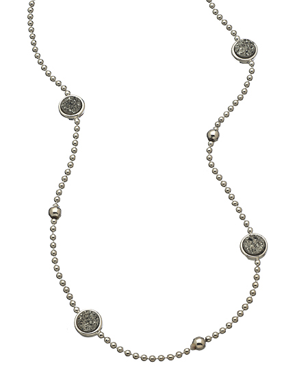 Top off your look with the subtle and elegant silver druzy bead necklace from Andara. It's designed with four druzy droplets on a silver plated ball link chain for a hint of sparkle. This piece is one beautiful accent.