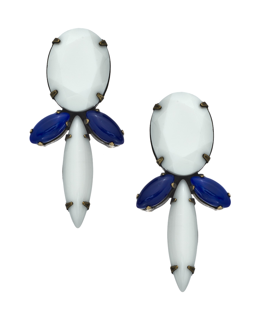 Angel Court’s Julio chandelier earrings are exquisitely crafted and ready to accessorize your favorite looks. Lustrous white stones are prong set and embellished with cobalt blue, marquise shaped accents. Earrings fasten with a post closure for pierced ears.