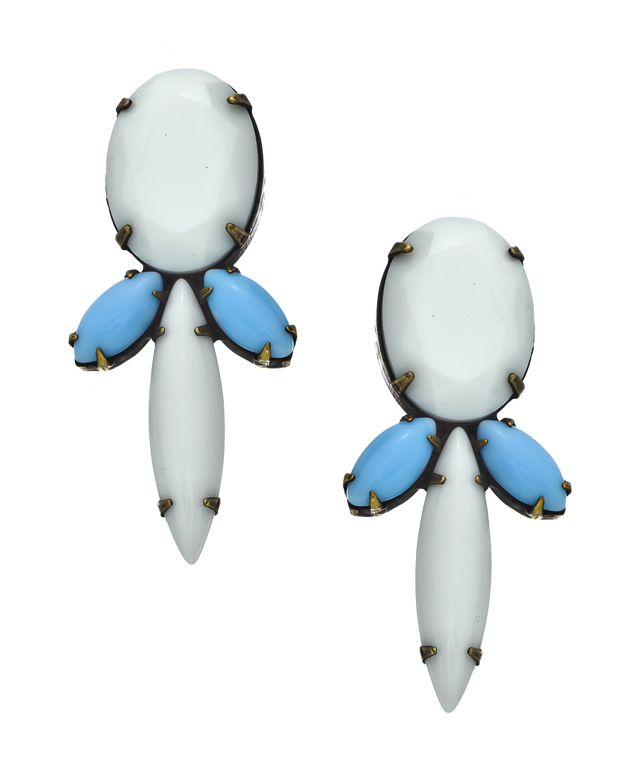 These Angel Court shreve chandelier earrings are a beautiful finishing touch. Turquoise accents highlight the lovely white, prong set stones for a unique and attractive look. Earrings fasten with a post closure for pierced ears.