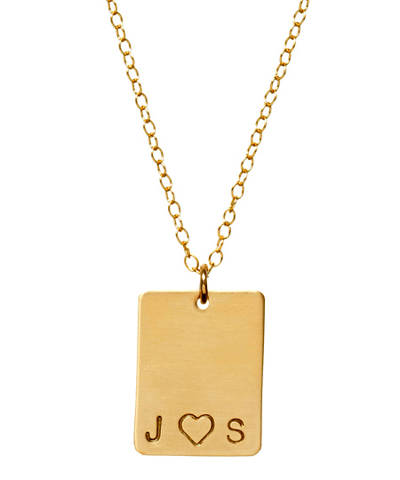 This rectangle heart and initials necklace from Anna Bee Jewelry is a great way to show everyone how in love you are with that special someone. Choose up to two initials to be engraved on the pendant. Each initial is separated by a heart symbol to show off just how much you care.