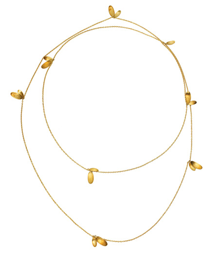 Arena CPH Bibiane Gold Layered Necklace is elegant and gorgeous. The delicate necklace is 18k gold-plated sterling silver and, at 47", is long enough to double.