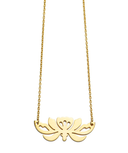 Beautiful and dainty, this pendant necklace is inspired by the lotus flower, an ancient East Asian symbol of eternity.The necklace is 18k gold-plated sterling silver and the chain measures 16" in length.
