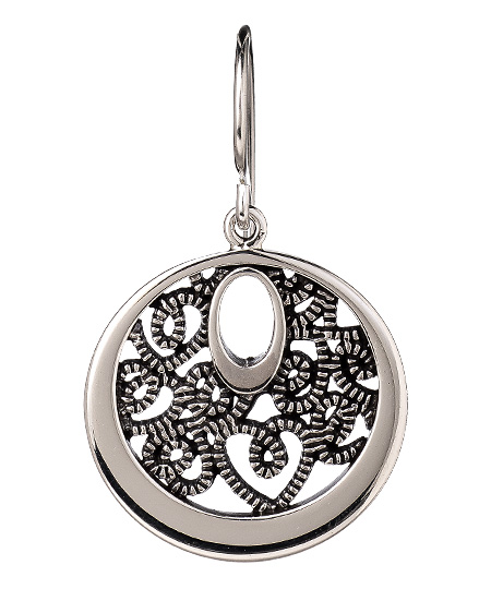 These silver filigree circle drop earrings from Argento Vivo are elegant and stylish. The circle pendant features a small cut out oval shape and a lovely filigree design set within a larger silver circle. The earrings fasten with French wire backs for pierced ears.