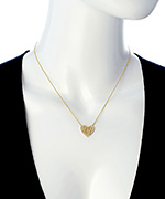 This classy gold heart signet necklace from Ariel Gordon is a unique way to identify yourself! Traditionally monograms are written in the following order: First Initial, Last Initial, Middle Initial. Please enter in the letters in the order you would like them to be engraved (ex: Ariel Rose Gordon should be written as AGR).