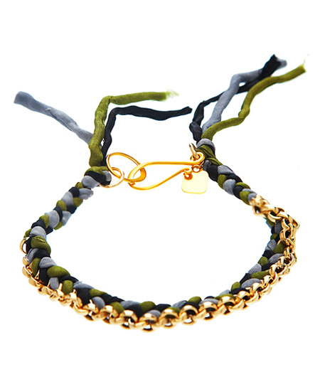 Dear friends deserve true-blue expressions of your love. The Ariel Gordon silk friendship bracelet is an unforgettable display of affection. Gorgeous silk bands in seagrass, sky and tempest blue are woven through a 14K gold fill rolo chain, knotted on the ends and joined with an oversized hook and eye clasp.