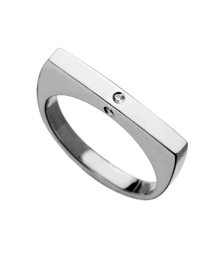 The look of the silver diamond flat top ring from Ariel Gordon is sharp in more ways than one. The flat top of the ring is embellished with a round cut diamond in the center. It's sure to give you a little edge.