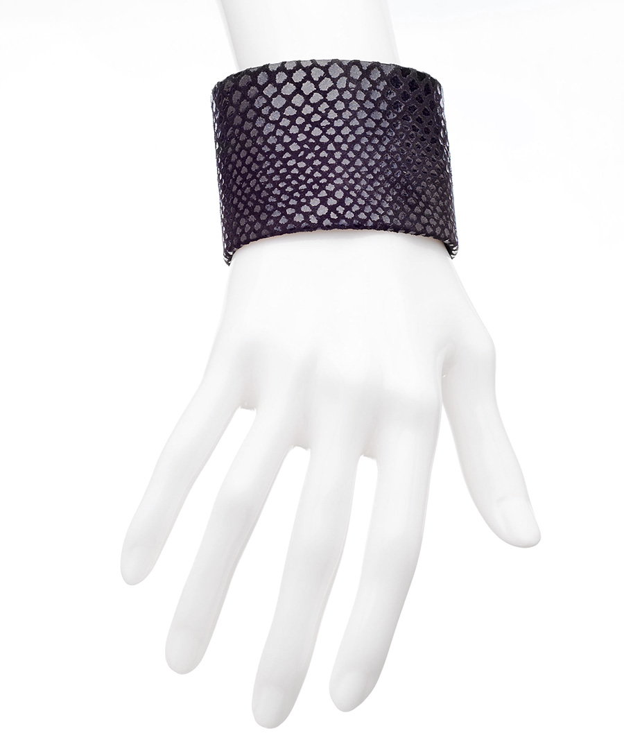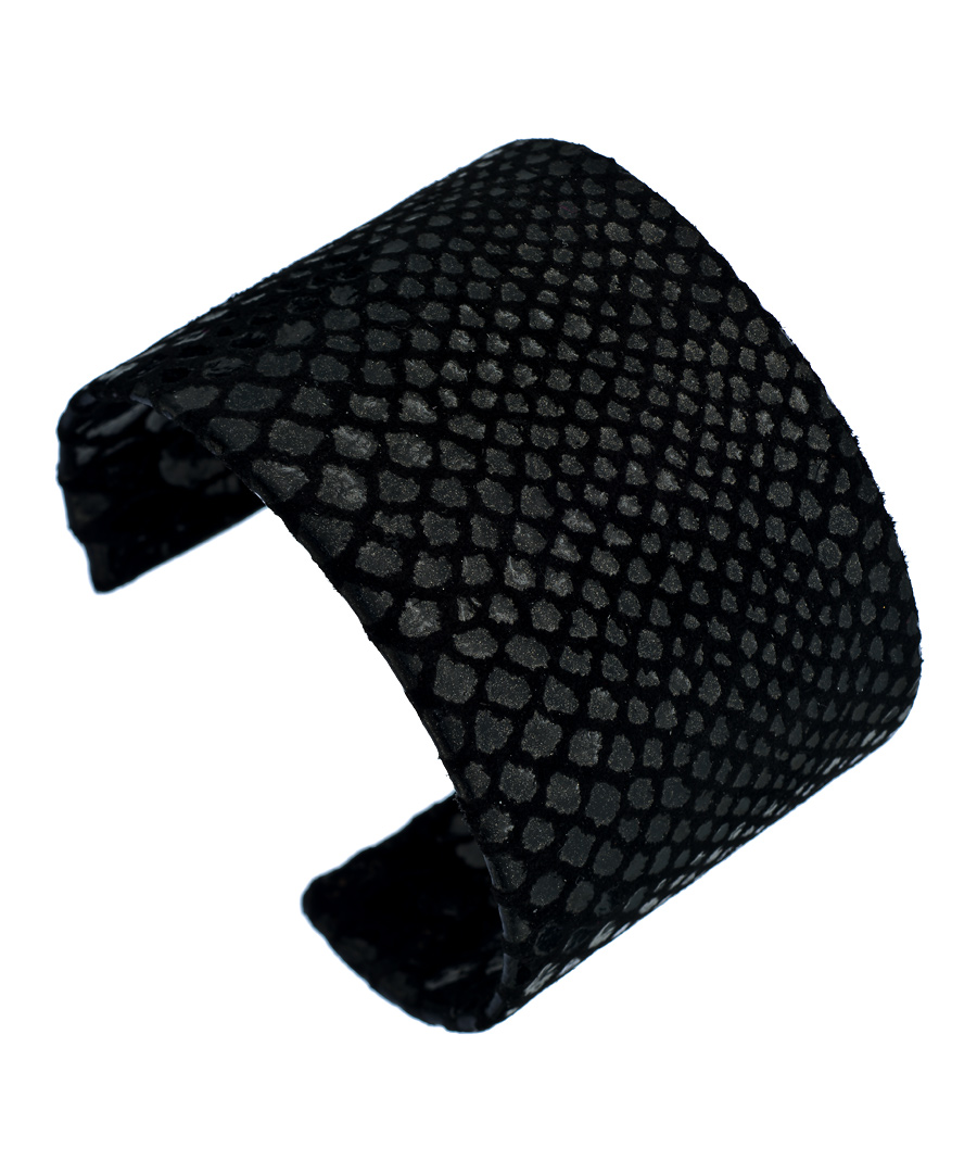 Edgy, mysterious… and fabulous! Three words that aptly describe this gorgeous A.V. Max black python embossed leather cuff bracelet. Covered in beautiful python embossed black leather, this bracelet delivers a fierce touch that will give you a confident, well-appointed look.