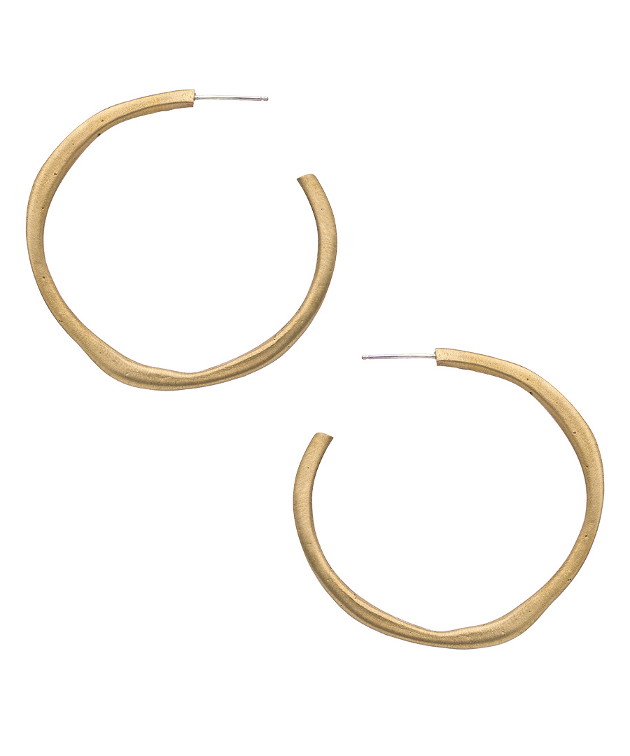 These B/C Designs brass Santi hoops are exquisite in every detail. Santi, which means holy, is the perfect name for these lovely earrings, that are understated, yet timelessly modern. Wear with jeans and a tee, or with your LBD, you're well-appointed either way! Earrings fasten with a post closure for pierced ears.