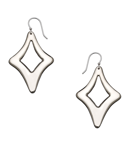 When you accessorize with something as beautiful as these B/C Designs Diamante Grande white bronze earrings, you may find yourself feeling so complete, other embellishments become an afterthought. Eye-catching diamond outlines are crafted in white bronze and hang from a french hook closure for pierced ears.