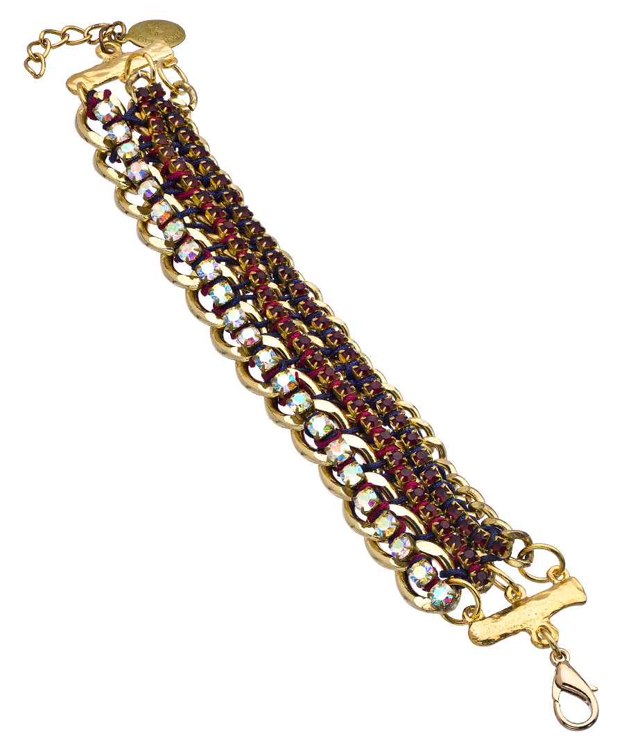 Bee Charming's Monte Carlo bracelet is a robust take on fairy-tale fashion that looks great with simple tops or dresses. Colorful silk thread and bold rhinestones give this modern-day gauntlet an elegantly edgy flair. This sparkling bracelet comes in your choice of green, black, brown, or navy.
