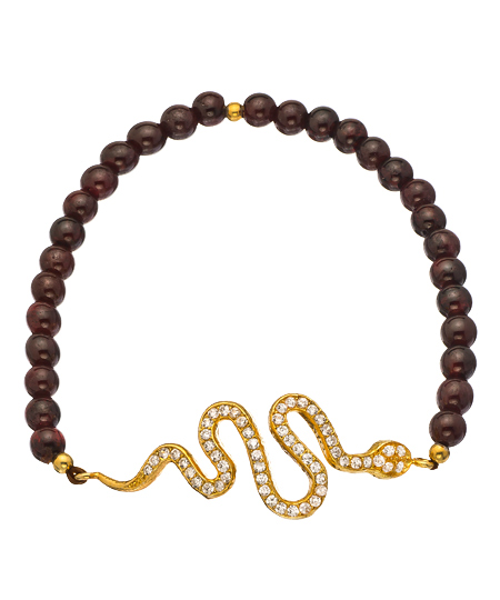 Exotic dark mulberry beads make up this beautiful CZ snake stretch bead bracelet from Belair, a great accessory for your casual get-ups. A sizzling snake decor made with bright cubic zirconias serves as the centerpiece. The pretty design offers an edgy touch and is great for livening up even the simplest outfit.
